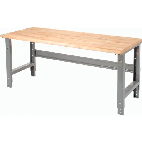 Global Industrial Adjustable Height Workbench, 60 x 30", Maple Butcher Block Safety Edge, Gray