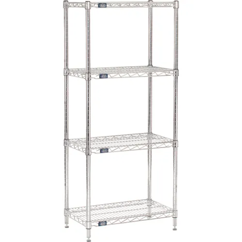 Nexel® 4 Shelf, Chrome Wire Shelving Unit, Starter, 30"W x 14"D x 63"H