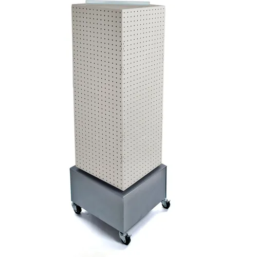 Global Approved 701415-WHT Interlocking Pegboard Floor Display W/ Wheels 14" x 40" White Solid