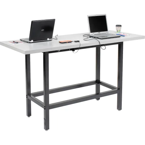 Interion® Standing Height Table With Power, 72"L x 30"W, Gray