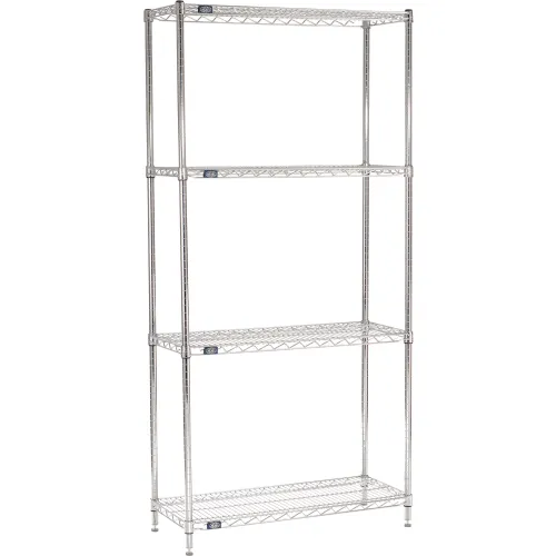 Nexel® 4 Shelf, Chrome Wire Shelving Unit, Starter, 36"W x 14"D x 86"H