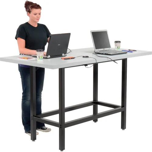 Interion® Standing Height Table With Power, 72"L x 36"W, Gray