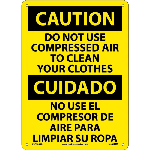 Bilingual Plastic Sign - Caution Do Not Use Compressed Air To Clean Clothes