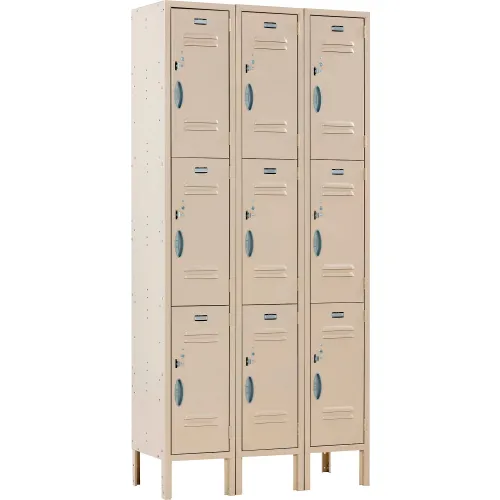 Global Industrial Capital® 3-Tier 9 Door Locker, 36"W x 15"D x 78"H, Tan, Unassembled