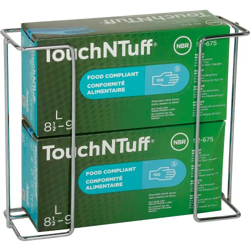 Global Industrial Double Glove Box Holder, Wire Steel, 11-15/16"W x 3-13/16"D x 9-1/2"H
