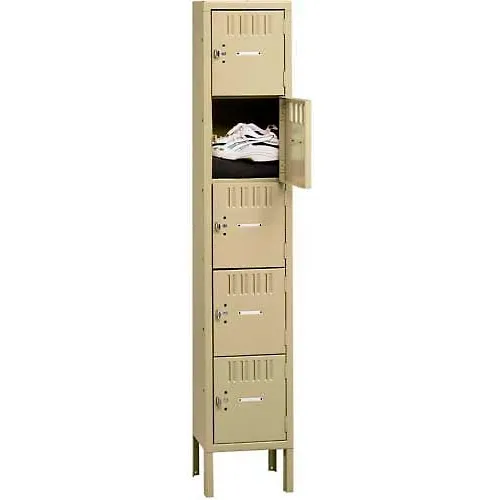 Tennsco® 5-Tier 5 Door Box Locker w/ Legs, 12"W x 18"D x 66"H, Sand, Assembled