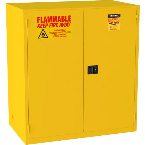 Global Industrial Flammable Cabinet, Manual Close Double Door, 120 Gallon, 59"Wx35"Dx65"H