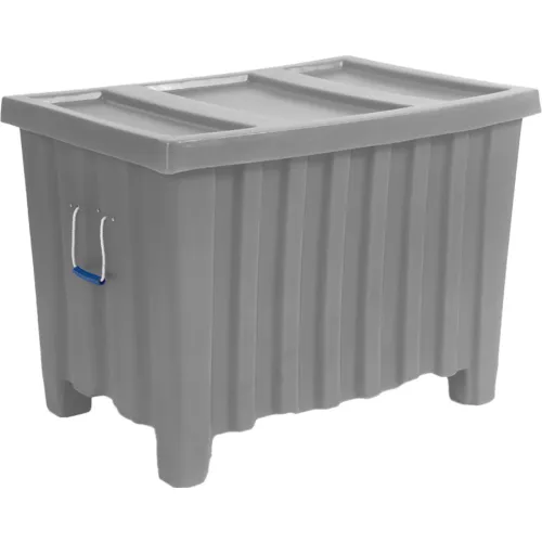 Forkliftable Plastic Bulk Shipping Container w/ Lid, 41"L x 28"W x 26-1/2"H, 500 lb. Capacity, Gray