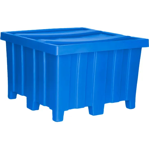 Forkliftable Plastic Bulk Shipping Container w/ Lid, 44"L x 44"W x 29-1/2"H, 1200 lb Capacity, Blue