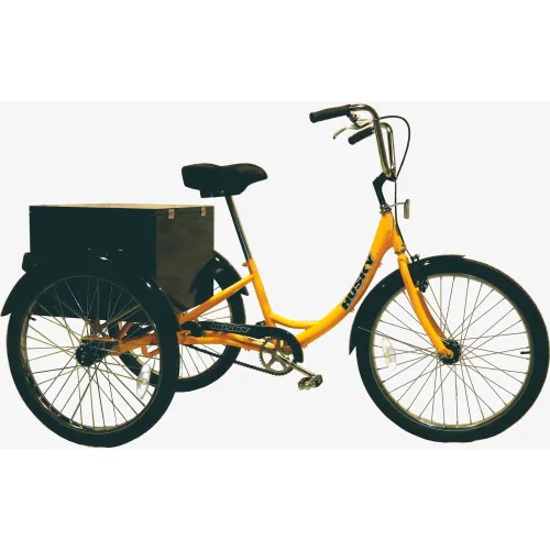 Husky Bicycles Industrial Tricycle, 26" Wheels, 600 Lb. Capacity, Yellow w/ Cabinet, Solid Tires