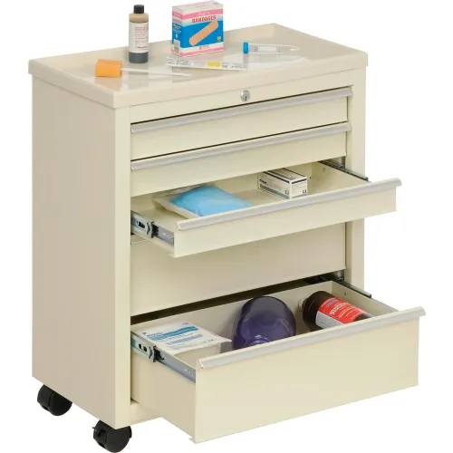 Lakeside® BV05 Classic 5-Drawer Medical Bedside Cart, Key Lock, Beige
