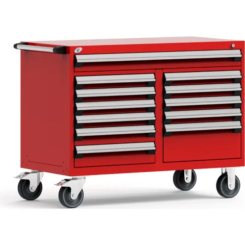 Rousseau Metal 12 Drawer Mobile Multi-Drawer Cabinet - 48"Wx27"Dx37-1/2"H Red