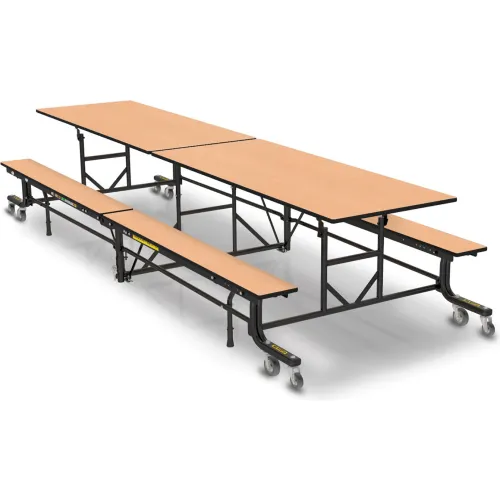 Global Industrial Mobile Cafeteria Table with Fixed Benches, 12'L x 29"H, Fusion Maple
