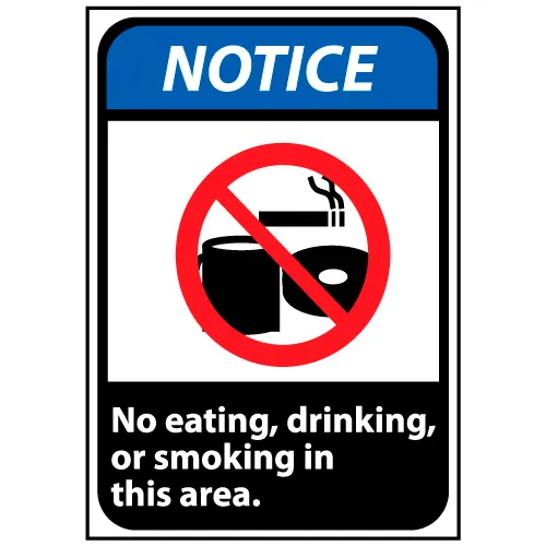 Notice Sign 14x10 Rigid Plastic - No Eating, Drinking or Smoking