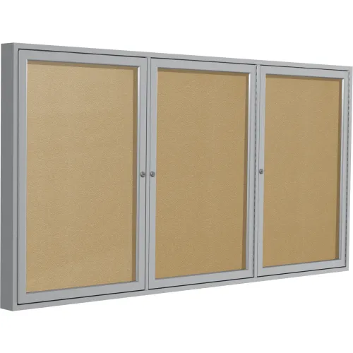 Ghent Enclosed Bulletin Board, Outdoor, 3 Door, 72"W x 48"H, Caramel Vinyl/Silver Frame
