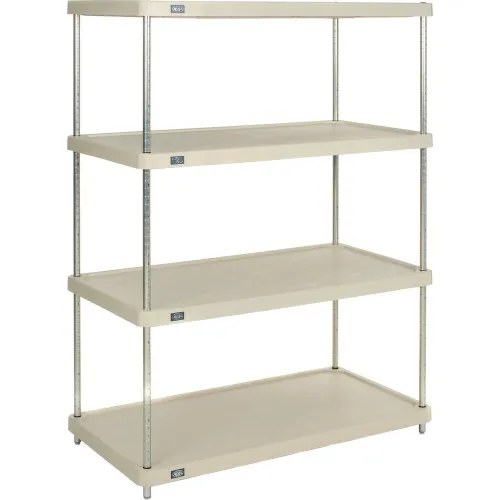 Nexel® 4 Shelf, Solid Plastic Shelving Unit, Poly-Z-Brite® Posts, 48"W x 24"D x 63"H