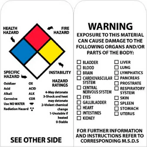 NMC RPT77 Tags, NFPA Diamond Tag, 6" X 3", White/Black, 25/Pk