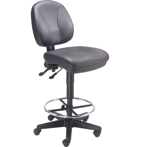 Interion® Leather Task Stool - 360° Footrest - Black