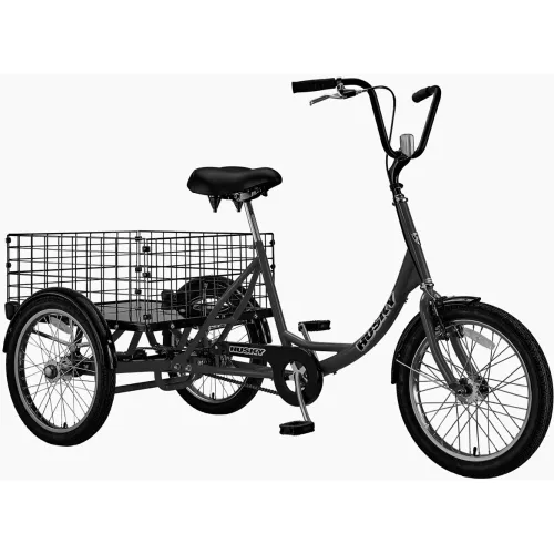Husky Bicycles T-320A Industrial Tricycle w/ Rear Basket & Platform, 20" Wheels, 600 lb. Cap., Black